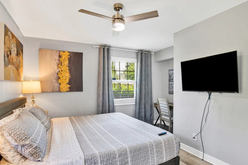 – Bedroom 2 – 12 in king bed with work desk and 43in smart TV