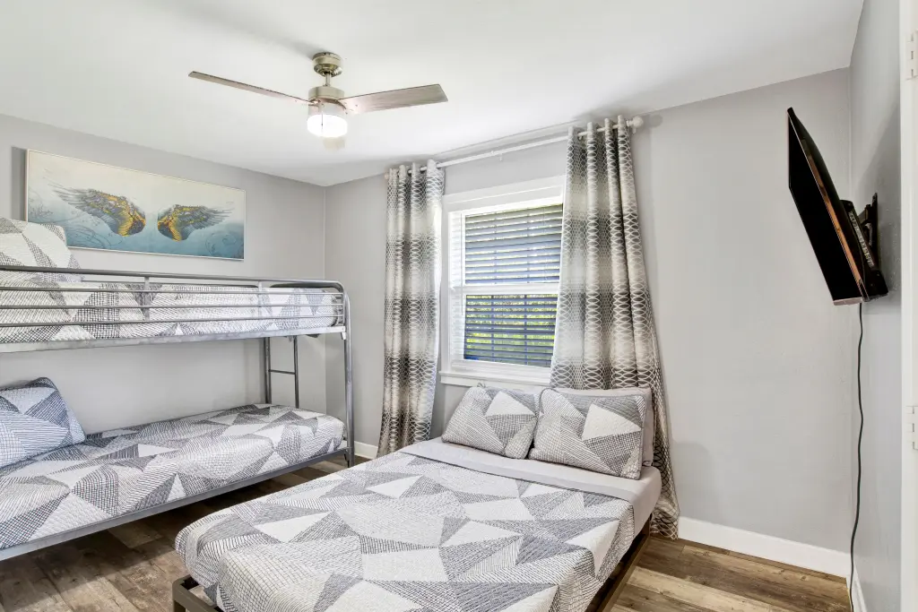 – Bedroom 1 – bunk twin beds and a full bed with 43in smart TV.